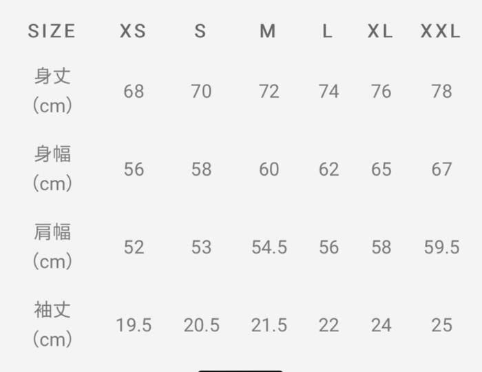 サイズ表は、商品画像の最後にございますのでご参照ください。